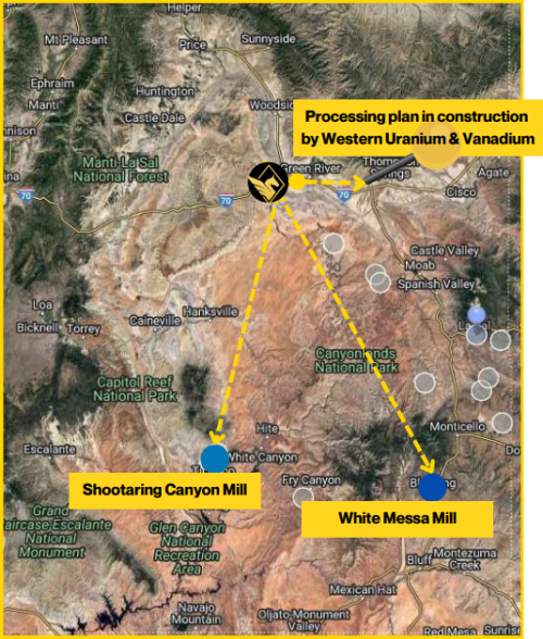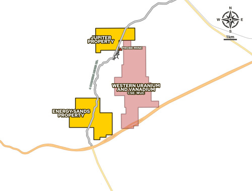 The 100% owned fully permitted Energy Sands Project consists of two properties totaling approx. 1,560 hectares located within the San Rafael Uranium District in Utah, bordering Western Uranium and Vanadium’s San Rafael Project*.